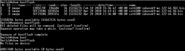 - Solução: Utilize o protocolo boot TFTP para carregar a nova imagem diretamente a partir de um servidor ou PC. Isso permitirá a instalação da nova imagem sem a necessidade de espaço adicional no sistema de arquivos do switch.