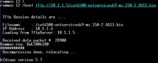 rommon 1> boot tftp://192.168.1.100/catalyst4900-ios.bin